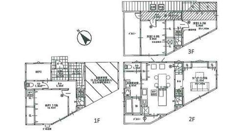 【居間・リビング】南向きで陽当たりが良く、窓の多いリビング空間。お洒落なスキップフロアの三階建てです
